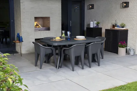 A szolid szerkezet és az elegáns, klasszikus kialakítás a Baltimore asztal jellegzetes tulajdonságai. Ideális családi összejövetelekhez és baráti találkozókhoz is. Az univerzális formatervezés lehetővé teszi az asztal különböző székekkel való kombinálását. Tartós és ellenáll az időjárás viszontagságainak, valamint az UV sugárzásnak. Könnyen tisztán tartható és egyszerűen összeszerelhető.