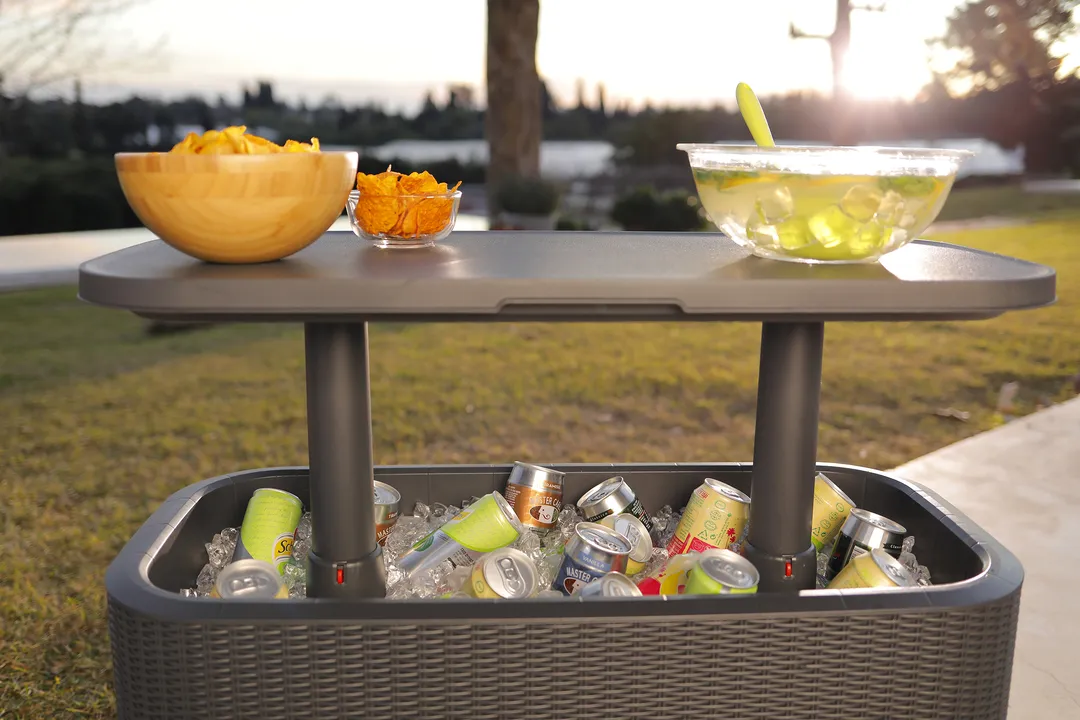 Az Ice Cube egy egyszerű formatervezésű, egyedi megjelenésű ülőhely párnával és tároló funkcióval. A termék székként, asztalként és lábtartóként is használható. A klasszikus színek és a rattan hatású felület lehetővé teszik a legigényesebb ügyfelek kielégítését is. A bútor anyaga a nedvességgel és az UV sugárzással szemben ellenálló műanyag, nagyon könnyű a tisztítása.