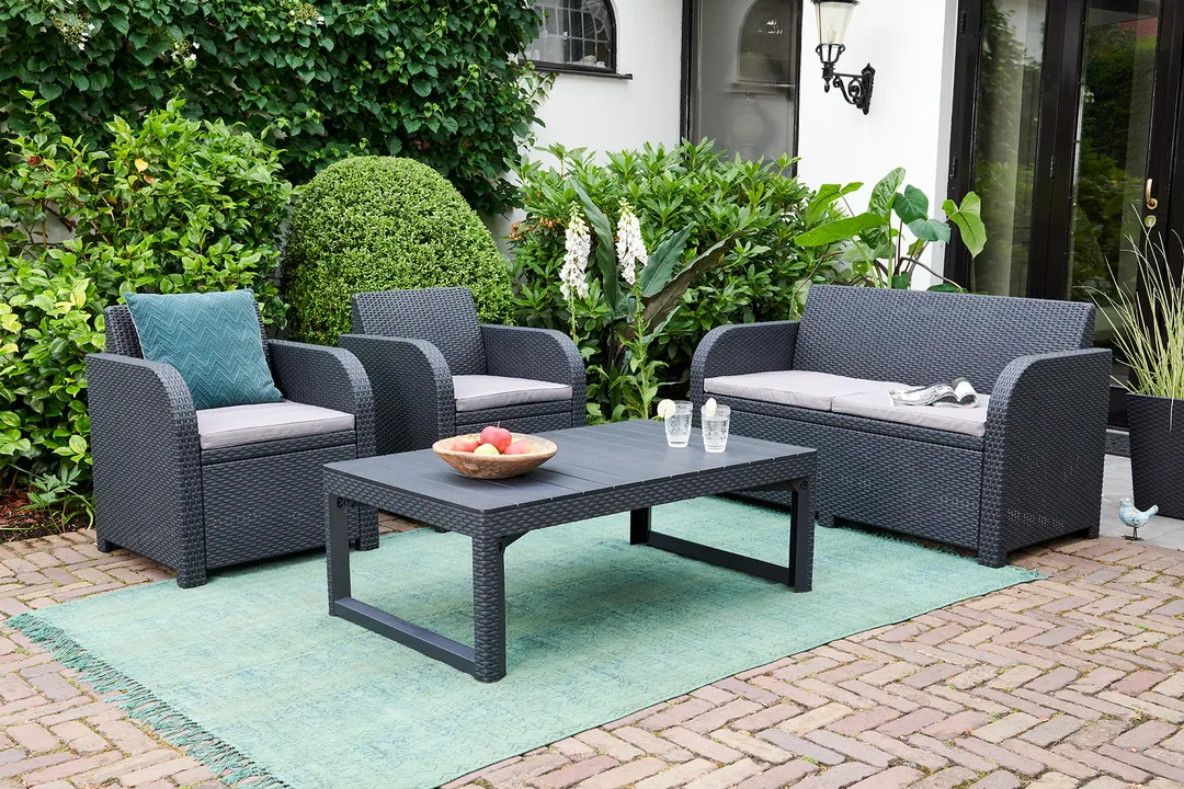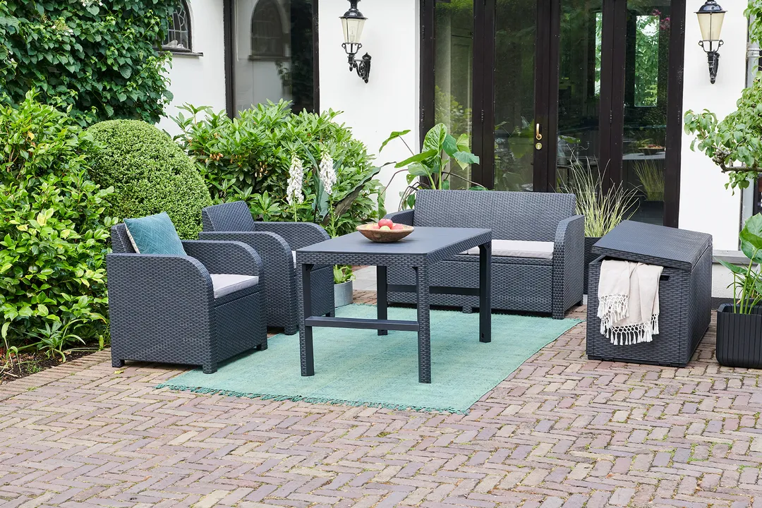 A két pozícióban állítható magasságú Lyon asztal kivételesen funkcionális megoldást nyújt, kialakítása lehetővé teszi a felhasználók szükségleteinek megfelelő magasság beállítását. A szerkezet lehetővé teszi az asztal 2 verzióban történő használatát: alacsony (kávézóasztal), vagy az étkezéshez kiváló, magas (étkezőasztal) verzióban. Egyszerű kialakítású, komfortos használatú és könnyedén összeszerelhető. Ellenáll az időjárás viszontagságainak és az UV sugárzásnak is.