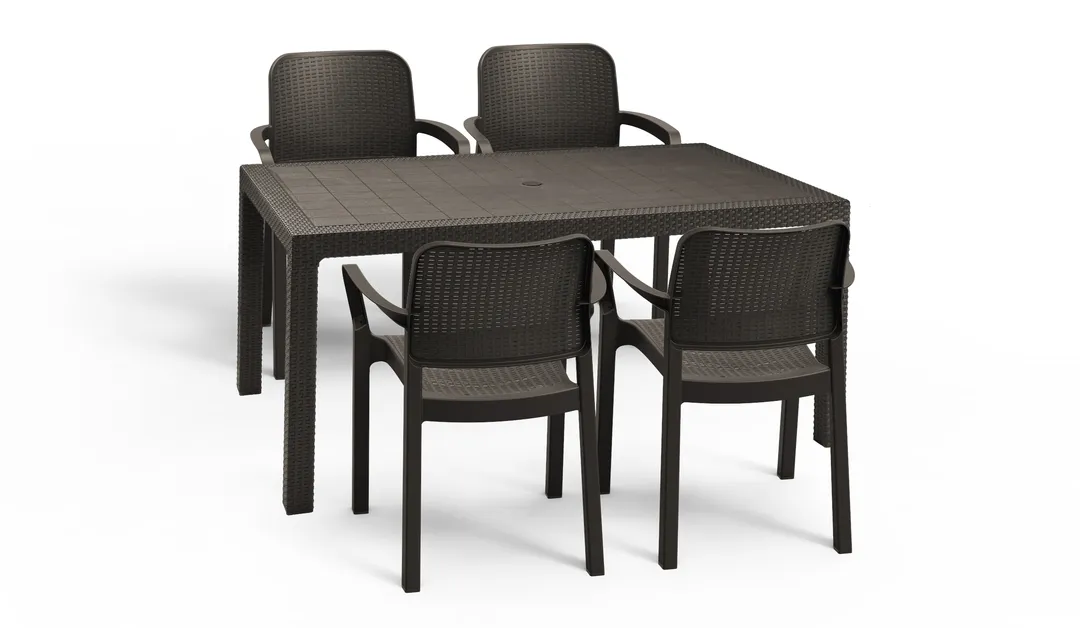 A Samanna a szolid szerkezet és a klasszikus elegancia ötvözete. A kényelmes, megfelelően profilozott, rattan fonás ihlette felület és a stabil kartámaszok optimális kényelmet biztosítanak a felhasználók számára. A terméket magas tartósság jellemzi és ellenáll a sérüléseknek, az időjárás viszontagságainak, valamint az UV sugárzásnak is.