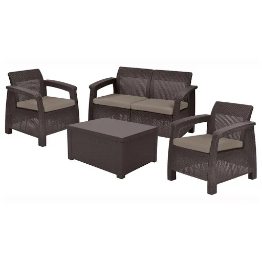 A CORFU BOX MŰRATTAN KERTI BÚTOR SZETT nemcsak stílusos megjelenést, hanem praktikus megoldást is kínál a kültéri terek számára. Az időtálló műrattan anyag modern megjelenést biztosít, akkor egy tárolóasztal kényelmesen elrejti a szükséges eszközöket és kiegészítőket.