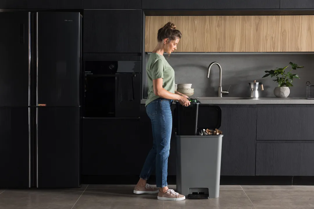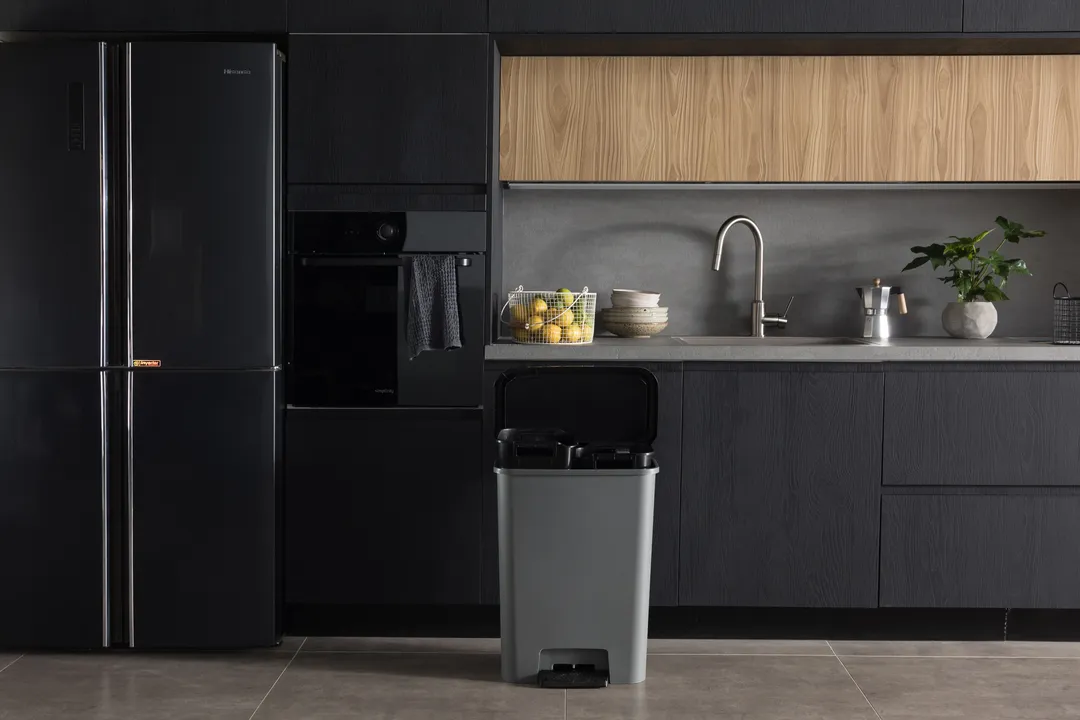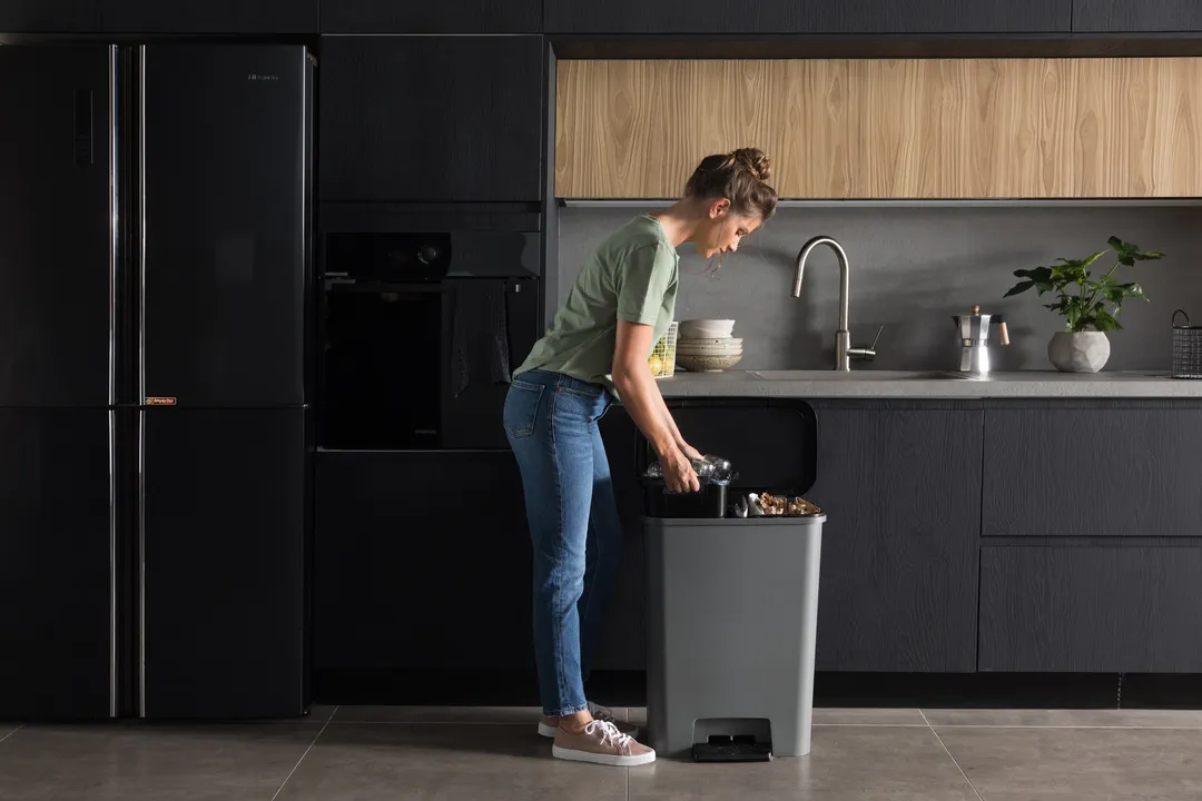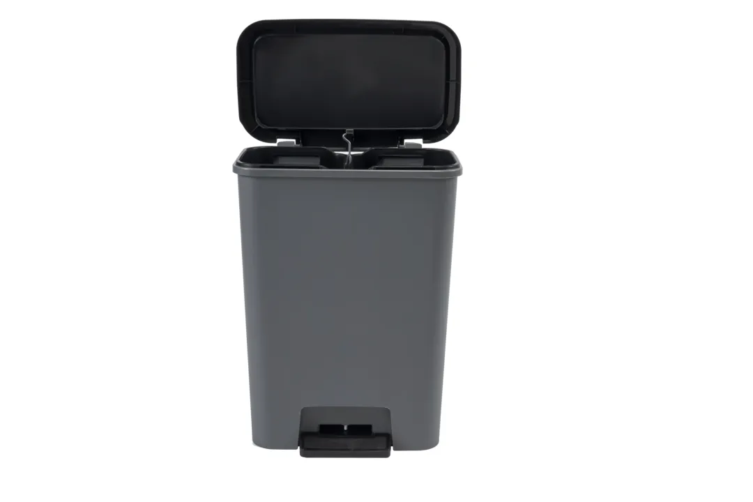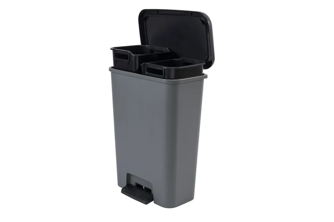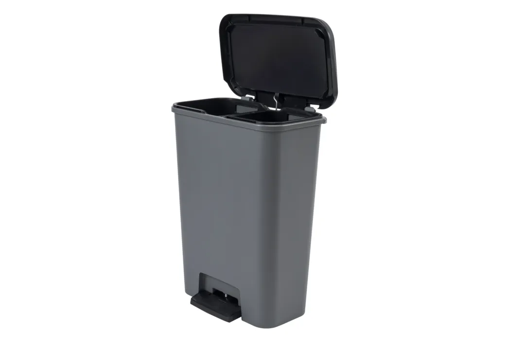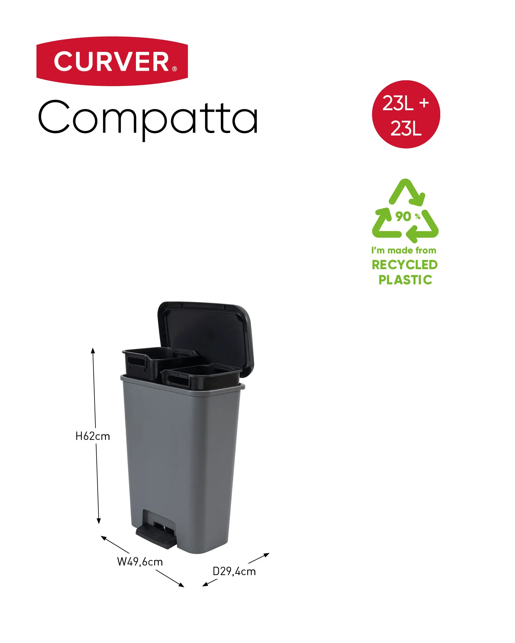 A Compatta termékcsalád Duo szemetese tökéletesen illik a modern stílusú helyiségekbe. A termék két tágas, 23L-es rekesszel rendelkezik, mely lehetővé teszi a hulladék szelektív gyűjtését. A fedél finoman és hangtalanul záródik, a kényelmes és nagy pedál pedig lehetővé teszi a tető kéz nélküli nyitását. További előnye a terméknek a gumírozott talp, amely megakadályozza a szemetes elcsúszását, ezzel magasfokú stabilitást biztosítva. Tisztítása rendkívül egyszerű, elegendő hozzá egy mosószeres vízbe áztatott törlőkendő. A szemetes ráadásul környezetbarát is, 90%-ban újrahasznosított műanyagból készül.
