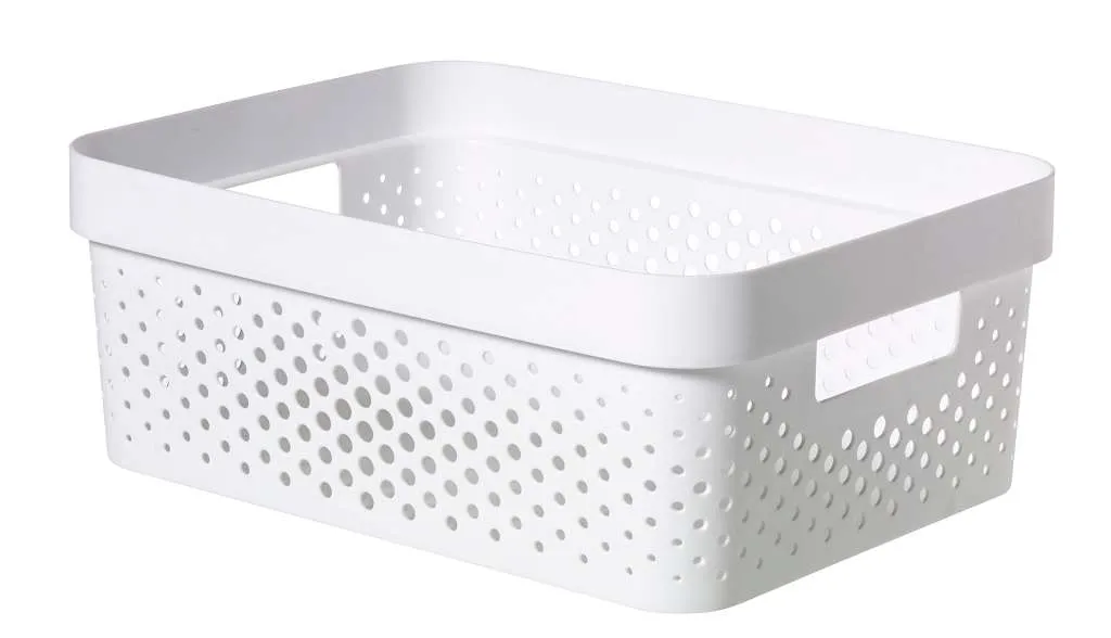 Az Infinity tárolódoboz egy moduláris és multifunkcionális tárolási megoldás az otthonodba. Kényelmes fogantyúinak köszönhetően könnyedén szállítható, így a könyvek, cipők, játékok, vagy különböző papírok bármely szobában helyet kaphatnak. A legjobb minőségű műanyagból készül, így ellenálló és könnyen tisztítható. Az egyedi, lyukacsos mintázat skandináv stílust kölcsönöz neki, amely tökéletes kiegészítője bármely szobának! További előnye a terméknek, hogy 100%-ban újrahasznosított anyagból készül, így rendkívül környezettudatos.