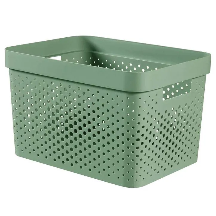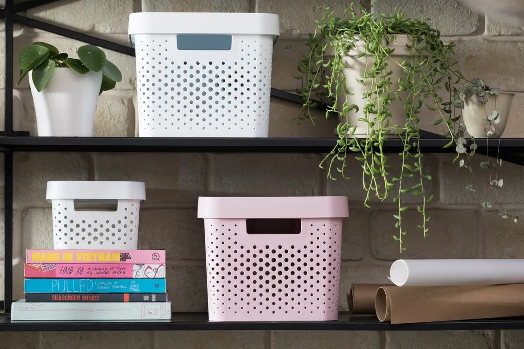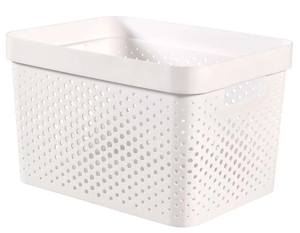 Az Infinity tárolódoboz egy moduláris és multifunkcionális tárolási megoldás az otthonodba. Kényelmes fogantyúinak köszönhetően könnyedén szállítható, így a könyvek, cipők, játékok, vagy különböző papírok bármely szobában helyet kaphatnak. A legjobb minőségű műanyagból készül, így ellenálló és könnyen tisztítható. Az egyedi, lyukacsos mintázat skandináv stílust kölcsönöz neki, amely tökéletes kiegészítője bármely szobának! További előnye a terméknek, hogy 100%-ban újrahasznosított anyagból készül, így rendkívül környezettudatos.