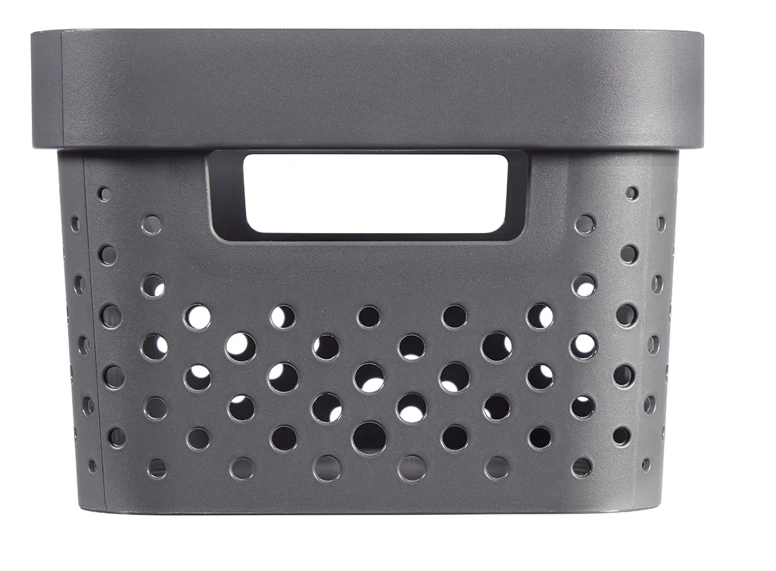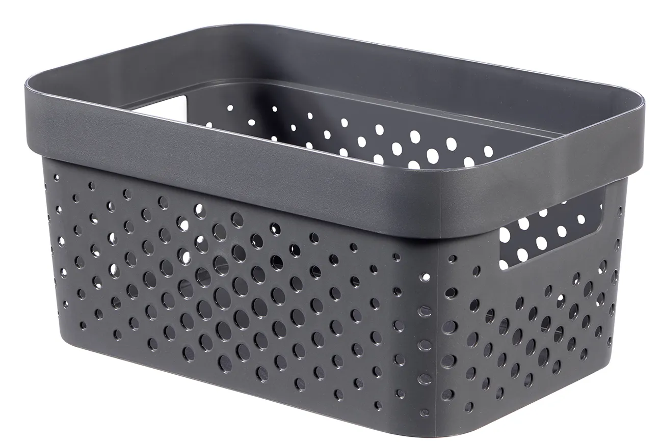 Az Infinity tárolódoboz egy moduláris és multifunkcionális tárolási megoldás az otthonodba. Kényelmes fogantyúinak köszönhetően könnyedén szállítható, így az ékszerek, konyhai és fürdőszobai kiegészítők, vagy a különböző papírok bármely szobában helyet kaphatnak. A legjobb minőségű műanyagból készül, így ellenálló és könnyen tisztítható. Az egyedi, lyukacsos mintázat skandináv stílust kölcsönöz neki, amely tökéletes kiegészítője bármely szobának! További előnye a terméknek, hogy 100%-ban újrahasznosított anyagból készül, így rendkívül környezettudatos.