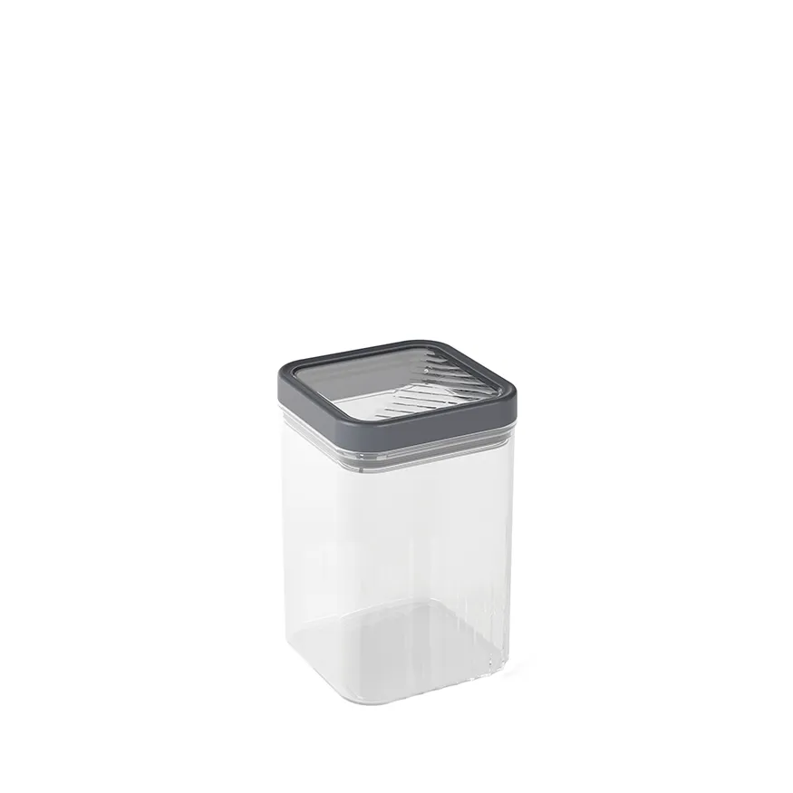 <p>A fedél integrált gumi tömítéssel van ellátva, amely megvédi a tartalmat a nedvességtől, és kényelmes fogást biztosít a könnyű nyitáshoz és záráshoz. A rendkívül átlátszó anyagnak köszönhetően a tartalom tökéletesen látható mind felülről, mind oldalról.