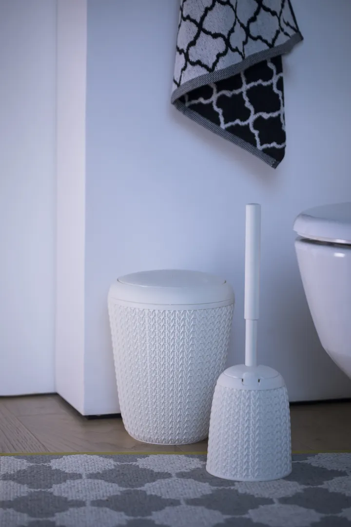 Számodra is fontos a mellékhelyiség higéniája? A Knit WC kefe segítségedre lesz ennek elérésében! A termék a modern design és a praktikus használat ötvözete, mely segít gyorsan és alaposan tisztára varázsolni a WC-t. Kis méretének köszönhetően a legszűkebb helyeken is elfér. A legjobb minőségű, tartós műanyagból készül, szőtt mintázat inspirálta külsejének köszönhetően pedig bármilyen stílusú mostóban esztétikus hatást kelt. Kézreálló fogójának és kis súlyának köszönhetően használata egyszerű, könnyen tisztítható és ellenáll a sérüléseknek. A Knit termékcsalád többi termékének tökéletes kiegészítője.