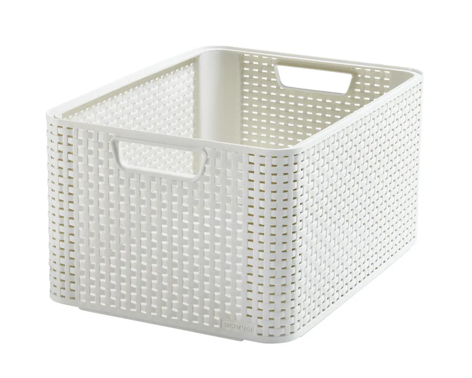 A Style termékcsalád L-es méretű kosara egy univerzális tárolási megoldás, amely használható a nappaliban, konyhában, fürdőszobában, vagy a hálószobában is. Tökéletes megoldás kisebb termékek tárolására, például kulcsoknak, távirányítóknak, kozmetikumoknak, fűszereknek, vagy akár gyógyszereknek is. Textúrája rattan szövést imitál, amely exkluzív kinézetet kölcsönöz neki, így bármely belső térben szépen mutat. Kényelmes fogantyúinak köszönhetően könnyedén szállítható. A kosarak egymásra tehetők, így helytakarékosan tárolhatók. További előnye, hogy legalább 70%-ban újrahasznosított anyagból készül, ennek köszönhetően rendkívül környezetbarát.