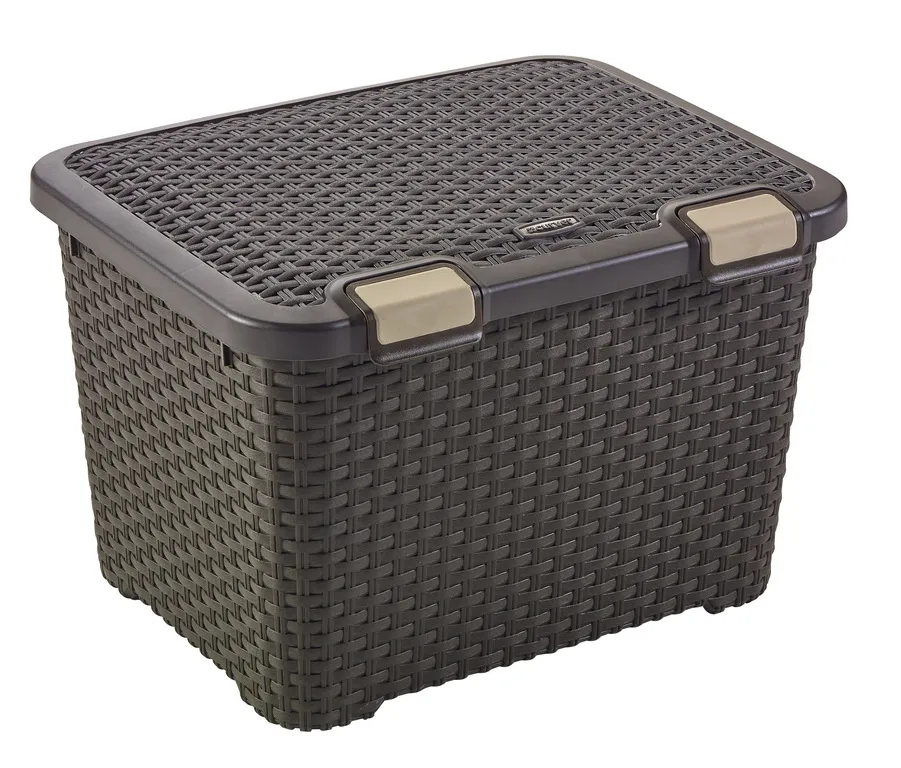 CURVER “STYLE” RATTAN TÁROLÓ LÁDA 43L FEDÉLLEL – SÖTÉTBARNA