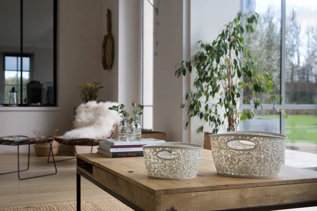 A Victoria termékcsalád kosara egy igazi gyöngyszem! Mintázata csipkére hasonlít, viszont könnyű és tartós műanyagból készül. Tökéletes megoldást nyújt apróbb kiegészítők és használati tárgyak tárolására, amik mindig jó, ha kéznél vannak. Két megerősített fogantyújának köszönhetően könnyedén szállítható. A különleges design és vonzó megjelenés hatására a kosár minden otthon dekoratív eleme lesz.
