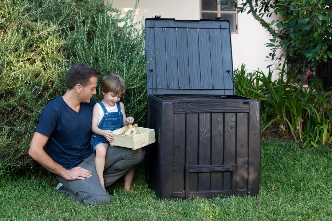 A 340L kapacitású Deco Composter ideális komposztáló a környezetbarát felhasználók számára. Előnyei közé tartozik a nagyon egyszerű összeszerelés és az egyszerű használat. A tartós fedél légzáró légmentesen záródik, hogy megelőzze a kellemetlen szagok kijutását. A gyártáshoz használt kiváló minőségű műanyag garancia a hosszú élettartamra.