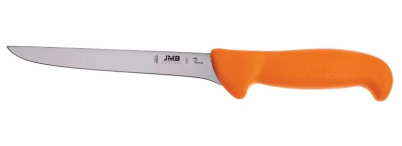 A JMB kések kivétel nélkül svéd Sandvik 14C28N acélból készülnek, mely a legfejlettebb high-tech késacél magas nitrogéntartalommal. Ideálisan finom és homogén szerkezetének köszönhetõen ez az acélfajta nagy keménységet, kiváló éltartást és jó korrózióállóságot garantál! A fogantyú csúszásmentes és megfelel az európai higiéniai és élelmiszer-biztonsági szabványoknak. (JMB)