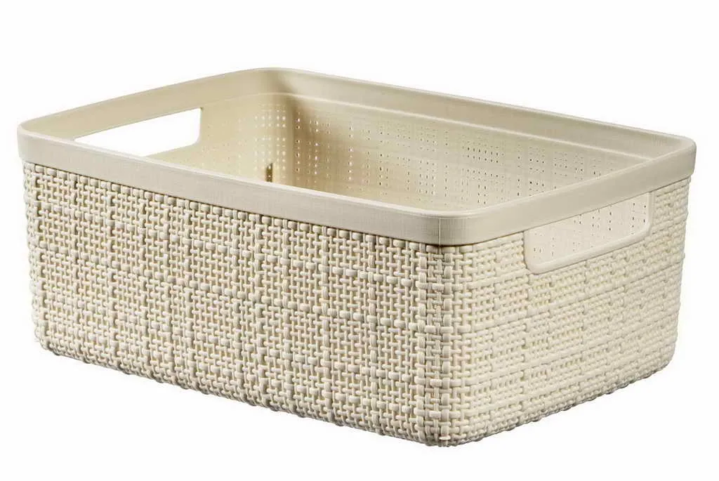 A Jute termékcsalád S-es méretű kosara tökéletes választás mindenki számára, aki praktikus és stílusos otthoni rendszerezőt keres. Ez az esztétikus termék tökéletes alternatívát jelent a kozmetikumok tárolására a fürdőszobában, a konyhai kiegészítőknek, vagy akár a nappali dekorációinak. Az egyedi és különleges textúrája szőtt mintázatot imitál, ezzel kölcsönözve modern és elegáns megjelenést a kosárnak. Ennek köszönhetően a termék bármilyen stílusú belső térhez jó választás. Praktikus fogantyúinak köszönhetően rendkívül egyszerűen mozgatható, valamint a polcról is könnyedén levehető. Ha a kosarak éppen nincsenek használatban, akkor kialakításuknak köszönhetően tökéletesen egymásba tehetők, ezzel sok értékes helyet megtakarítva. A Jute kosarak 100%-ban újrahasznosított műanyagból készülnek, így teljes mértékben környezetbarátak. Anyaga könnyen tisztítható és rendkívül tartós, így éveken át jó szolgálatot fog tenni.