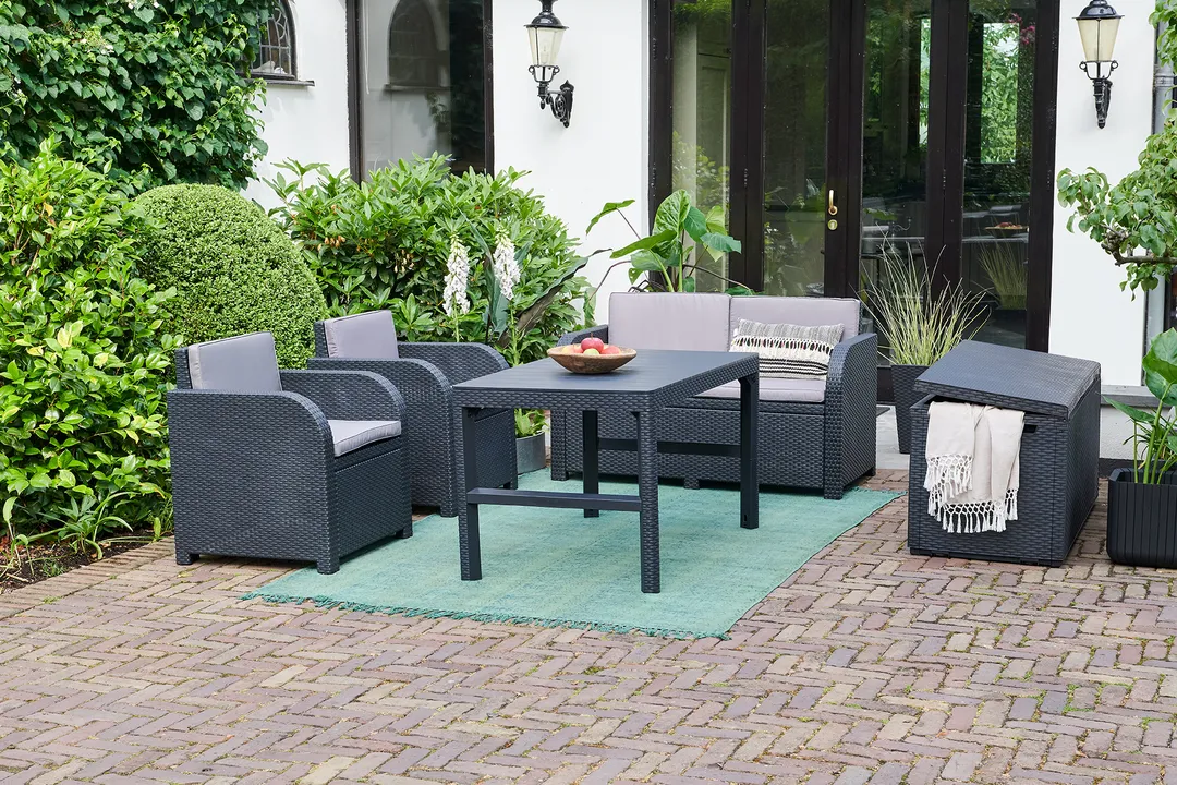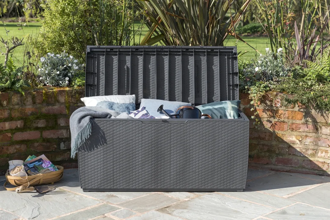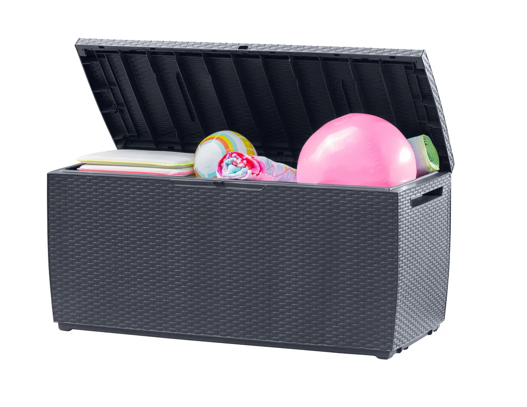 A 270L-es Capri tárolót a természetes rattan fonás inspirálta, időtálló formatervezése mindenki tetszését elnyeri, aki stílusos kertben gondolkozik. A kedvezőtlen időjárási feltételeknek ellenálló magas minőségű műanyag rendkívül tartós és garantálja a kerti szerszámok, játékok és egyéb kerti tartozékok biztonságos tárolását.