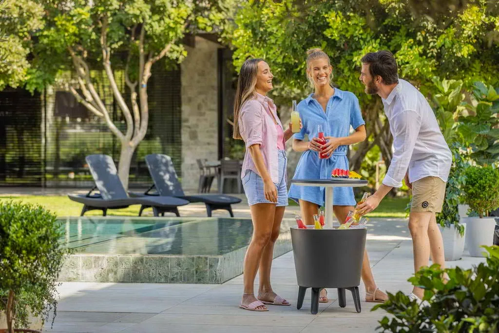 Funkcionális kerti bár, amely összecsukva kézreálló asztal funkcióját tölti be, szétnyitás után pedig hagyományos bárként használható italhűtő tárolóval. Elegáns formatervezésének, kivitelezésének és funkcionalitásának köszönhetően a Cool Bar rendkívül hasznossá válik a kertben megrendezett baráti és családi összejöveteleken.