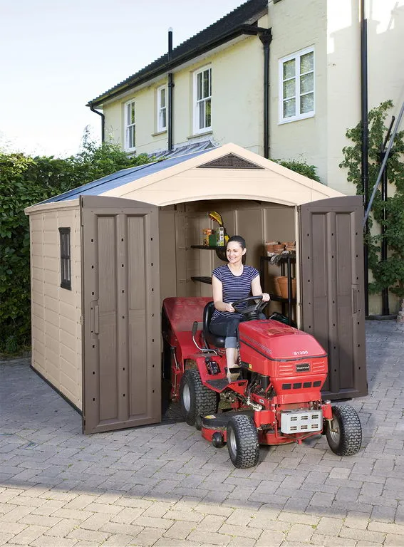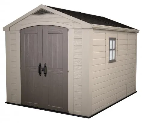 A tágas Factor 8×11 a praktikus és stílusos megoldásokat kereső felhasználók igényeire jelent megoldást. A nyeregtető és a magas minőségű anyagokból készült falak ellenállnak a kedvezőtlen légköri feltételeknek, a nedvességnek és a mechanikus sérüléseknek. A nagy belső tér különböző típusú keti eszközök és szerszámok tárolására alkalmas. A szerszámos ház belseje tovább alakítható polcok, kampók és akasztók rögzítésével. A magas minőségű anyag hosszú élettartamot, a szolid és tartós szerkezet biztonságos használatot és stabilitást garantál.