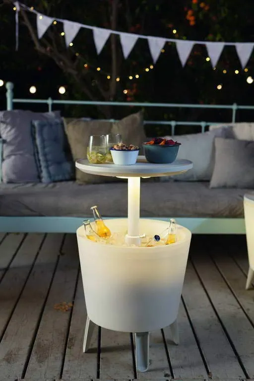 Az Illuminated Cool Bar italtartó asztal kivételes formatervezése a legigényesebb felhasználókat is lenyűgözi. A termék legfontosabb jellemzői az innovatív, háttérvilágítással rendelkező szerkezet, az asztallap optimális mérete és a funkcionális italtároló. EZ a funkcionális és modern kiegészítő tökéletesen beválik a kertben, erkélyen vagy a teraszon.