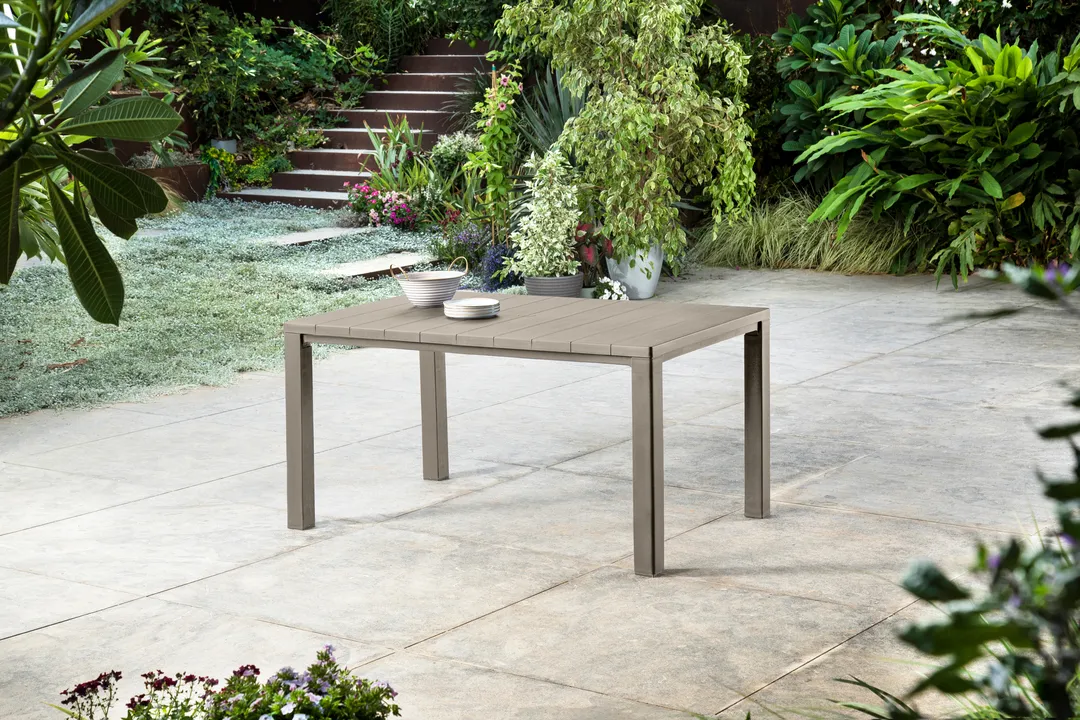Az egyszerű és univerzális forma a funkcionális Julie étkezőasztal fő előnye; ennek köszönhetően az asztal bármilyen bútorral kombinálható – klasszikus és korszerű stílusúval egyaránt. A széles asztallap tökéletesen beválhat a kertben szervezett nagy családi összejövetelek, vagy baráti ebédek során. Nagyon könnyű összeszerelni, egyszerű tisztítani. Ellenáll a szélsőséges időjárási körülményeknek és az UV sugárzásnak.