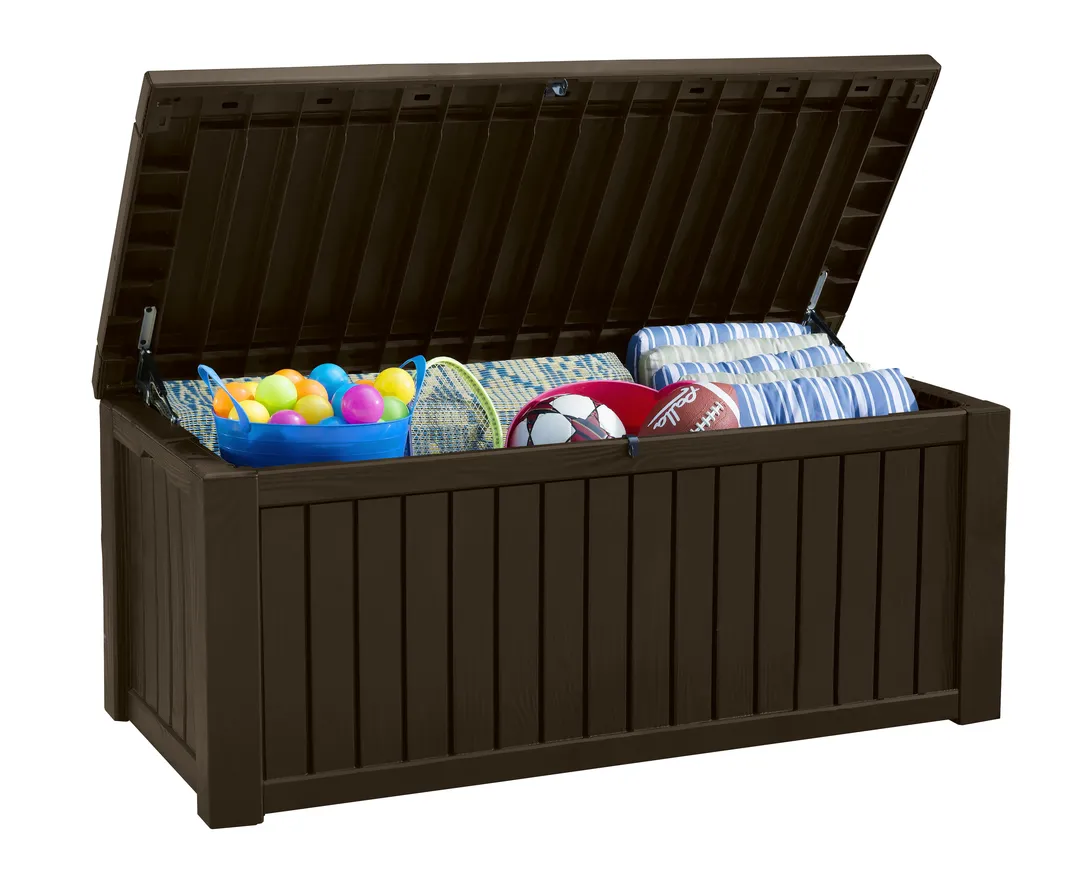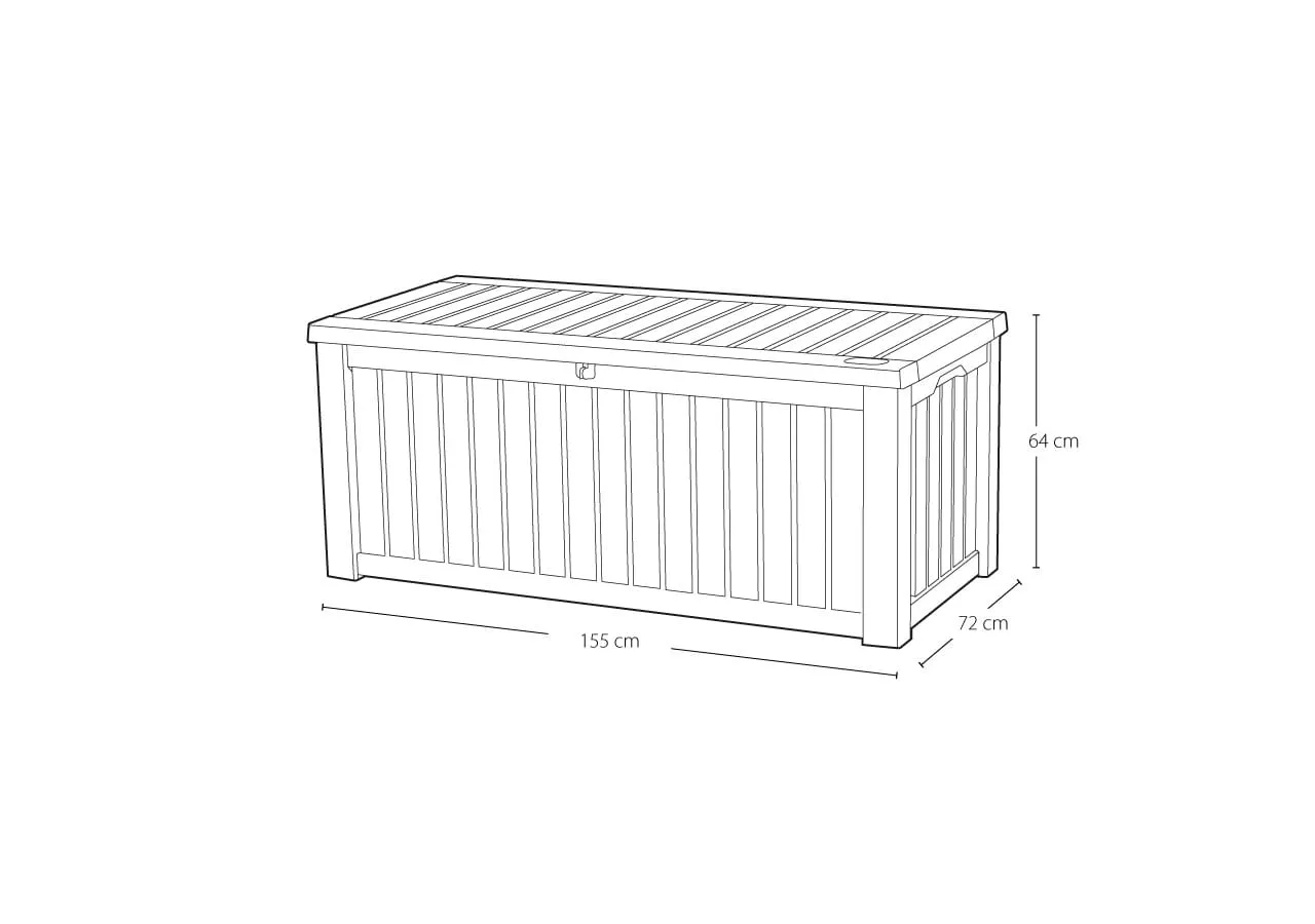 A stílusos Rockwood kerti tároló előnye a nagy kapacitása és az egyszerű összeszerelése. Ezen előnyöknek köszönhetően olyan tárgyak találhatnak helyet maguknak a tárolóban, mint a kerti párnák, ágytakarók, pokrócok, vagy a szükséges kerti szerszámok. A fedél nyitását megkönnyítő mechanizmus a termék további előnyét képezi. Szilárdságának köszönhetően a tároló ülőhelyként is szolgálhat 2 személy számára.