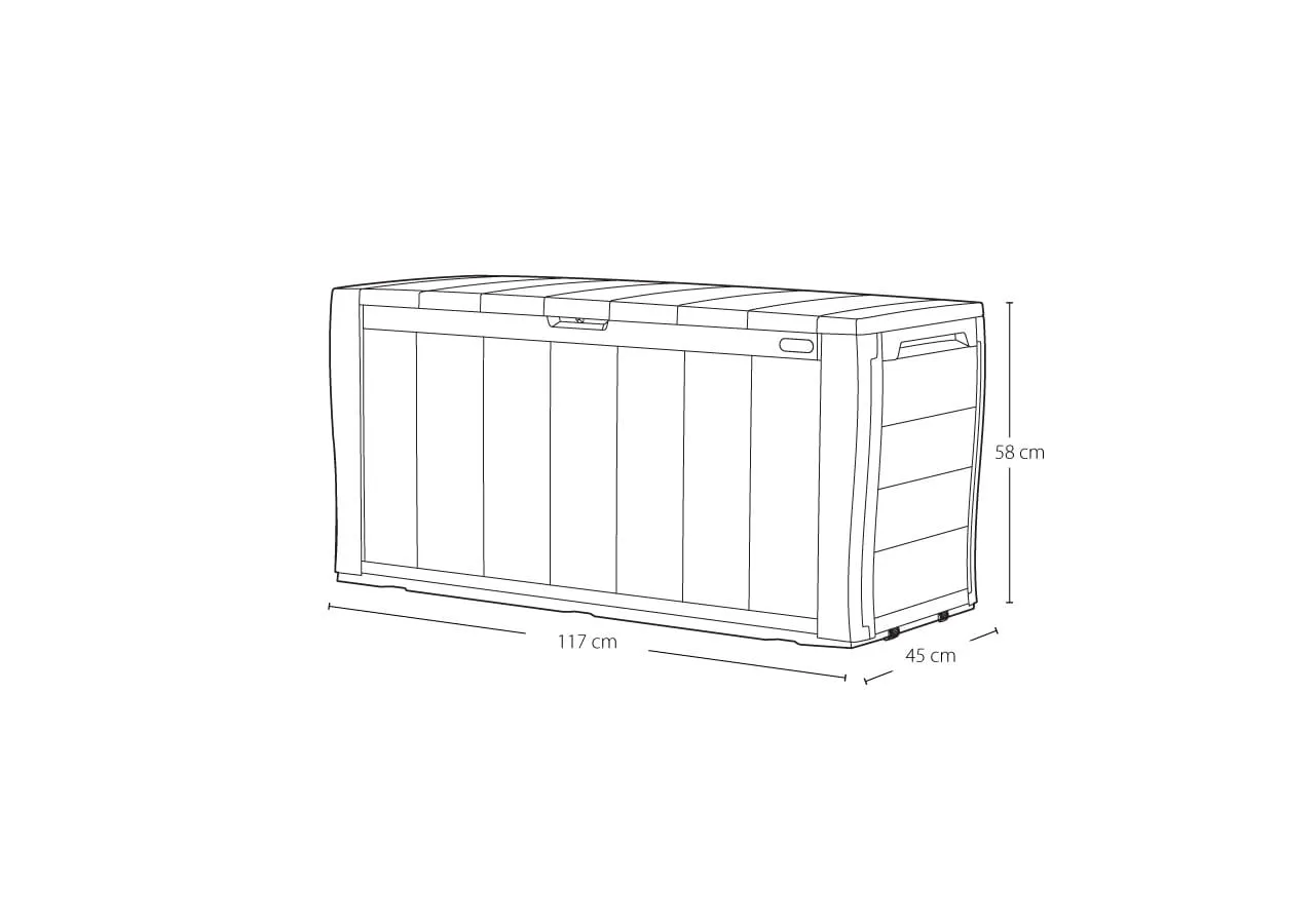 A Sherwood 270L-es kerti tároló előnyei az egyszerű forma, valamint a funkcionalitás és a gyors összeszerelés. Különböző kerti szerszámok tárolására szolgál, legyen szó akár lapátokról, permetezőkről, metszőollókról. A hagyományos színválasztéknak és a fát imitáló felületnek köszönhetően a tároló minden kertbe passzol.