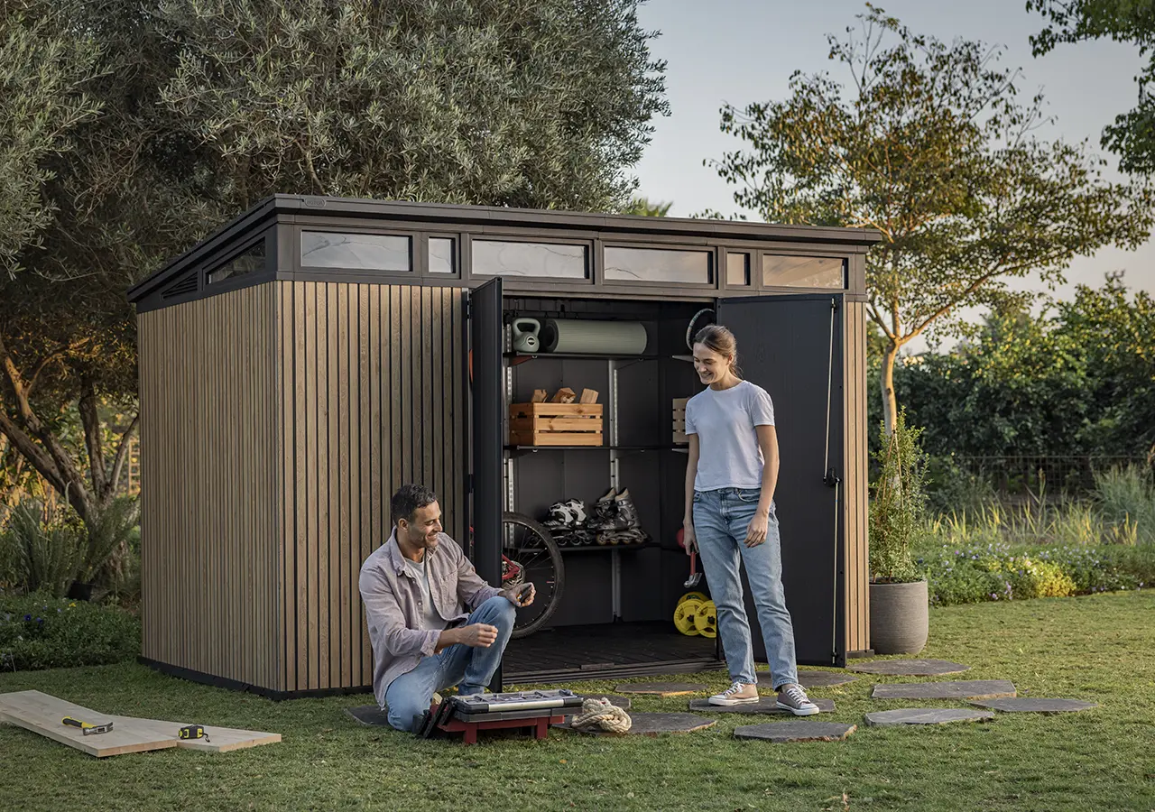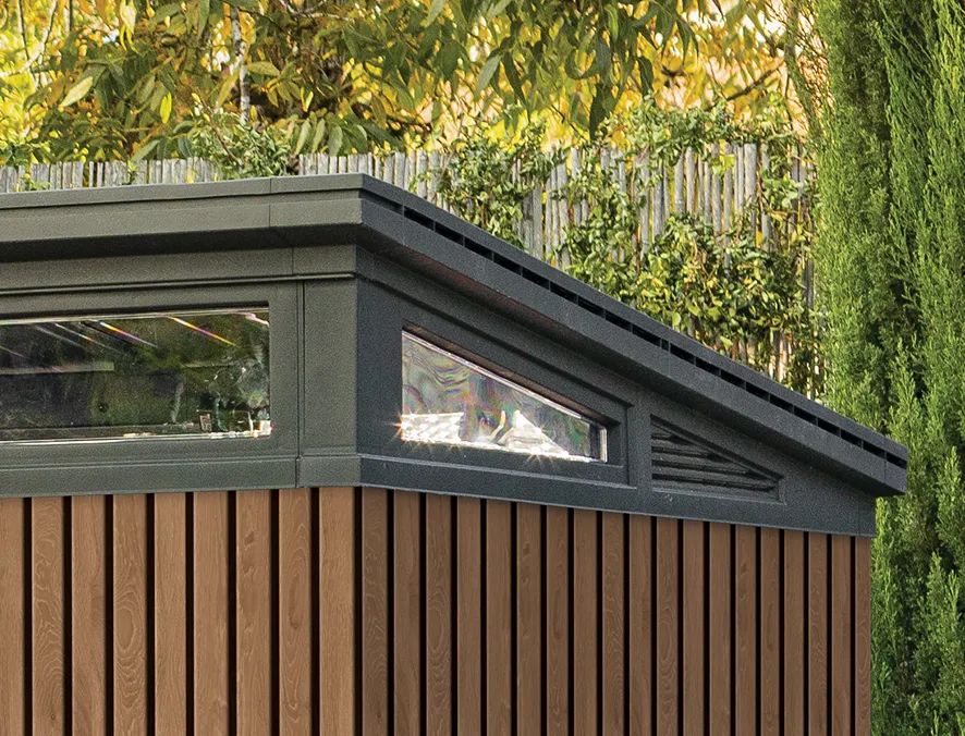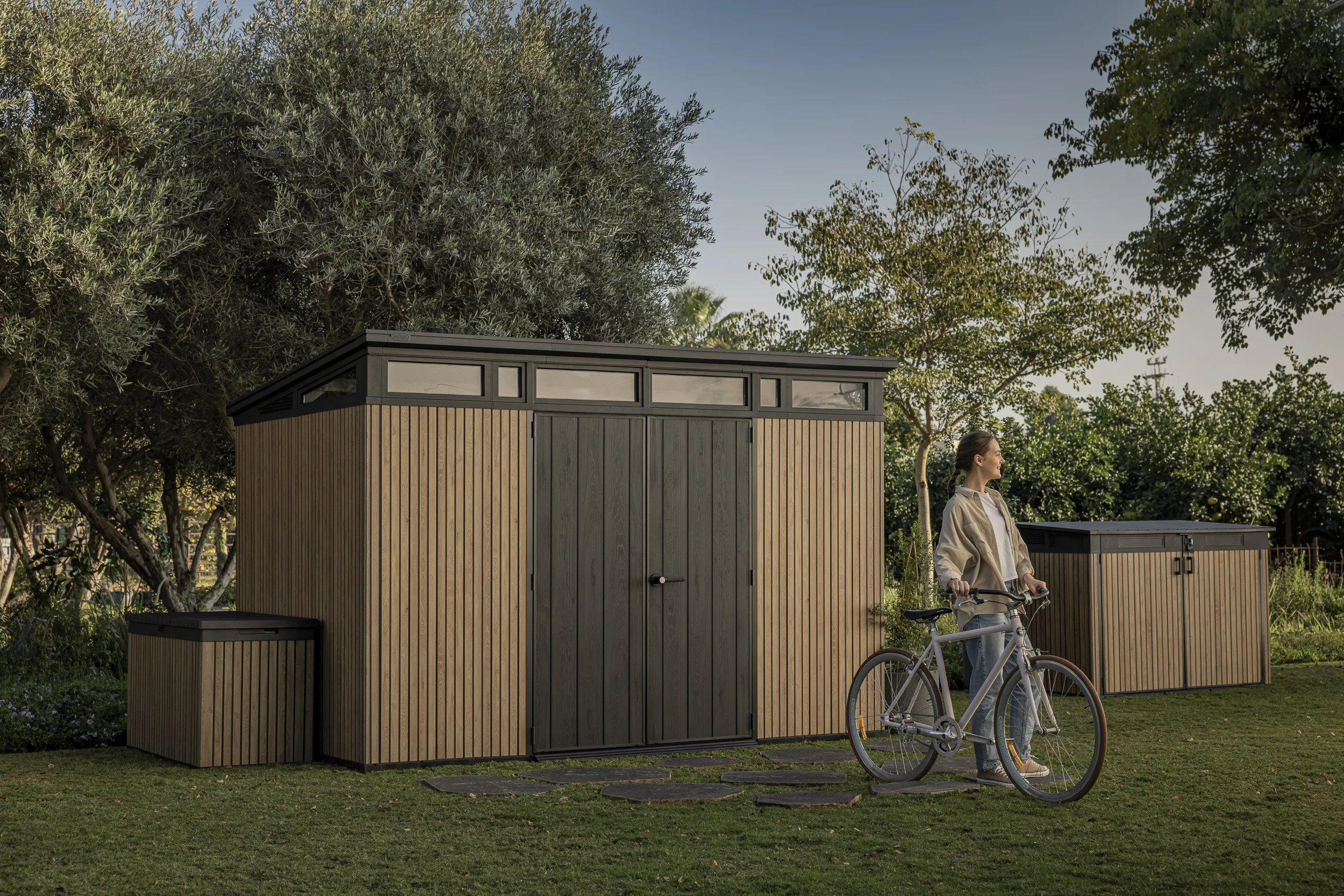 A Signature kollekció egy stílusos, modern kerti házakból álló kollekció, amely lehetővé teszi, hogy különböző textúrák és modellek közül válassz, hogy egyedi tároló megoldást alakíthass ki a kertedben. Egyikük, a rendkívül tágas PENTHOUSE 11X7 minden tekintetben modern. Az ablakok felett ferde tetővel, és számos más elegáns kialakítással büszkélkedhet, és a barkács szerszámoktól kezdve a nagyméretű kültéri sporteszközökig, motoros felszerelésekig mindent tökéletesen tárol. A PENTHOUSE 11X7 SIGNATURE COLLECTION az egyedülálló DECOCOAT technológiával készült, amely amellett, hogy időjárásálló, minden más technológiánál jobban díszíti a kültéri környezetet és megfelel a legújabb dizájn trendeknek. A DECOCOAT “Akár a valódi fa, de jobb” technológia a műanyag előnyeit kínálja esztétikus külsővel. Ez a rendkívül modern és strapabíró kerti ház teljesen időjárásálló és karbantartásmentes – nem rozsdásodik, nem szívja magába a vizet, nem válik fel a felülete