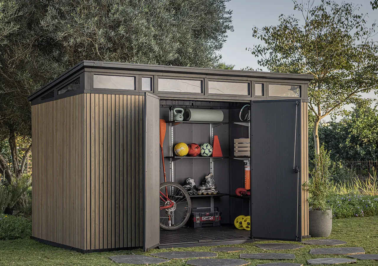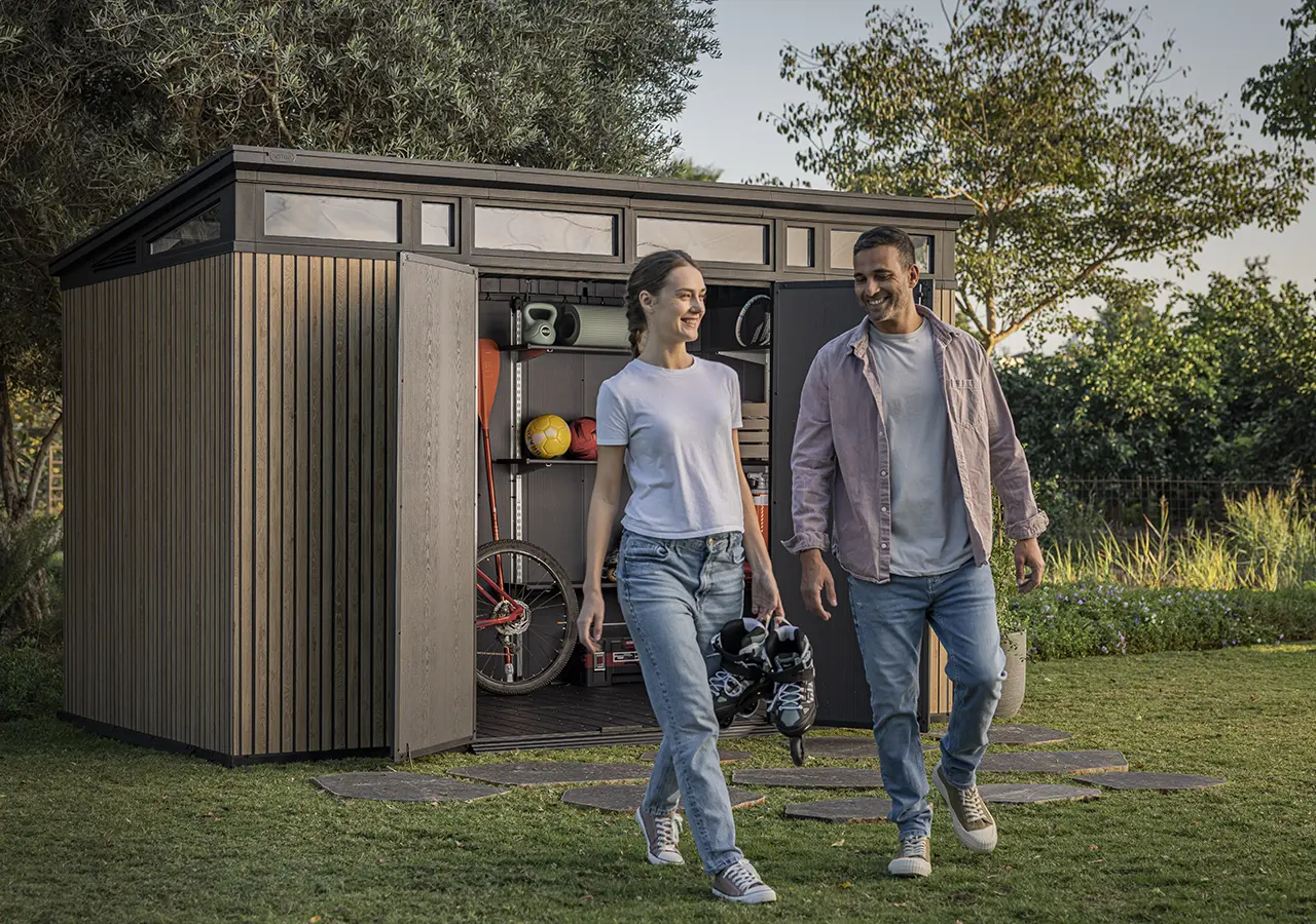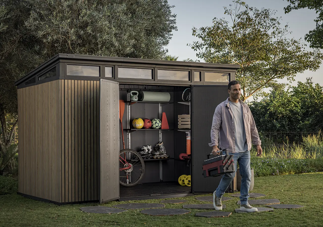 A Signature kollekció egy stílusos, modern kerti házakból álló kollekció, amely lehetővé teszi, hogy különböző textúrák és modellek közül válassz, hogy egyedi tároló megoldást alakíthass ki a kertedben. Egyikük, a rendkívül tágas PENTHOUSE 11X7 minden tekintetben modern. Az ablakok felett ferde tetővel, és számos más elegáns kialakítással büszkélkedhet, és a barkács szerszámoktól kezdve a nagyméretű kültéri sporteszközökig, motoros felszerelésekig mindent tökéletesen tárol. A PENTHOUSE 11X7 SIGNATURE COLLECTION az egyedülálló DECOCOAT technológiával készült, amely amellett, hogy időjárásálló, minden más technológiánál jobban díszíti a kültéri környezetet és megfelel a legújabb dizájn trendeknek. A DECOCOAT “Akár a valódi fa, de jobb” technológia a műanyag előnyeit kínálja esztétikus külsővel. Ez a rendkívül modern és strapabíró kerti ház teljesen időjárásálló és karbantartásmentes – nem rozsdásodik, nem szívja magába a vizet, nem válik fel a felülete