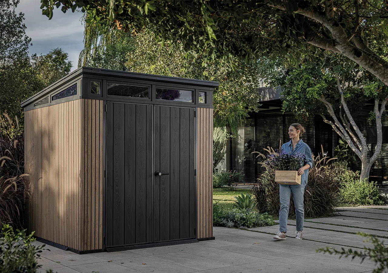 A Signature kollekció egy stílusos, modern kerti házakból álló kollekció, amely lehetővé teszi, hogy különböző textúrák és modellek közül válassz, hogy egyedi tároló megoldást alakíthass ki a kertedben. Egyikük, PENTHOUSE 7X7 minden tekintetben modern. Az ablakok felett ferde tetővel, és számos más elegáns kialakítással büszkélkedhet, és a barkács szerszámoktól kezdve a nagyméretű kültéri sporteszközökig. A PENTHOUSE 7X7 SIGNATURE COLLECTION az egyedülálló DECOCOAT technológiával készült, amely amellett, hogy időjárásálló, minden más technológiánál jobban díszíti a kültéri környezetet és megfelel a legújabb dizájn trendeknek. A DECOCOAT “Akár a valódi fa, de jobb” technológia a műanyag előnyeit kínálja esztétikus külsővel. Ez a rendkívül modern és strapabíró kerti ház teljesen időjárásálló és karbantartásmentes – nem rozsdásodik, nem szívja magába a vizet, nem válik fel a felülete